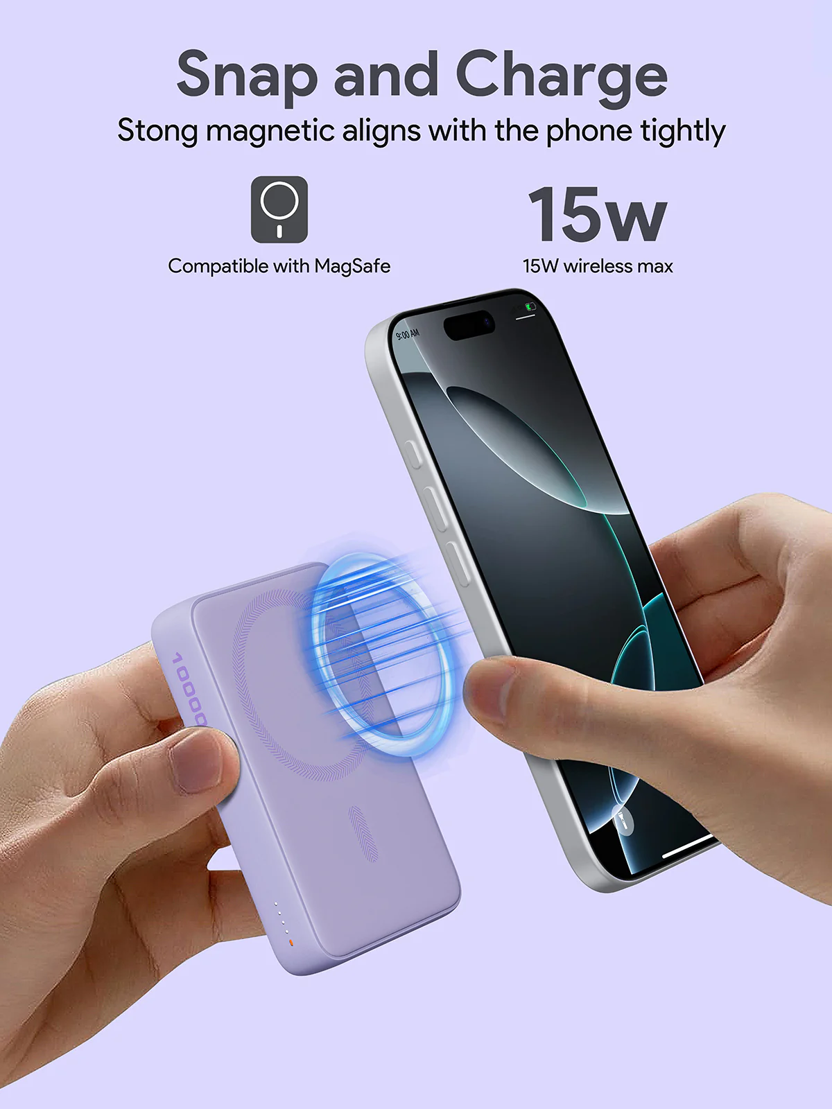 • Wireless Charging: Provides 15W wireless charging for iPhone 16 series and models running on iOS 17.2 or higher.