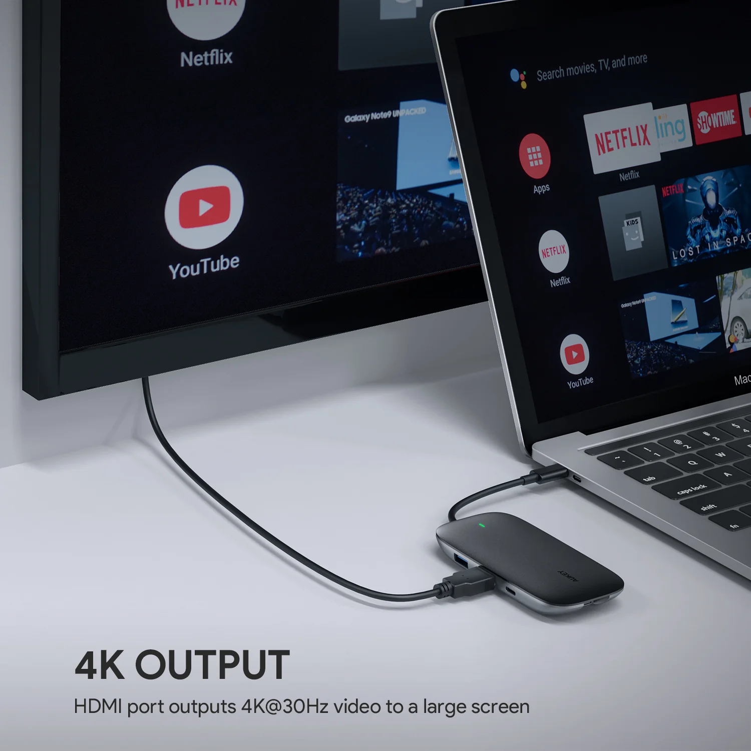 • 8-in-1 data, 4K video, Gigabit Ethernet, and power transfer station for all your USB-C devices: 3 USB 3.1 Gen 1 (USB 3.0) ports, 1 USB-C pass-through charging port with 100W Power Delivery, 1 HDMI port, 1 SD card slot, 1 MicroSD card slot, 1 Ethernet port.