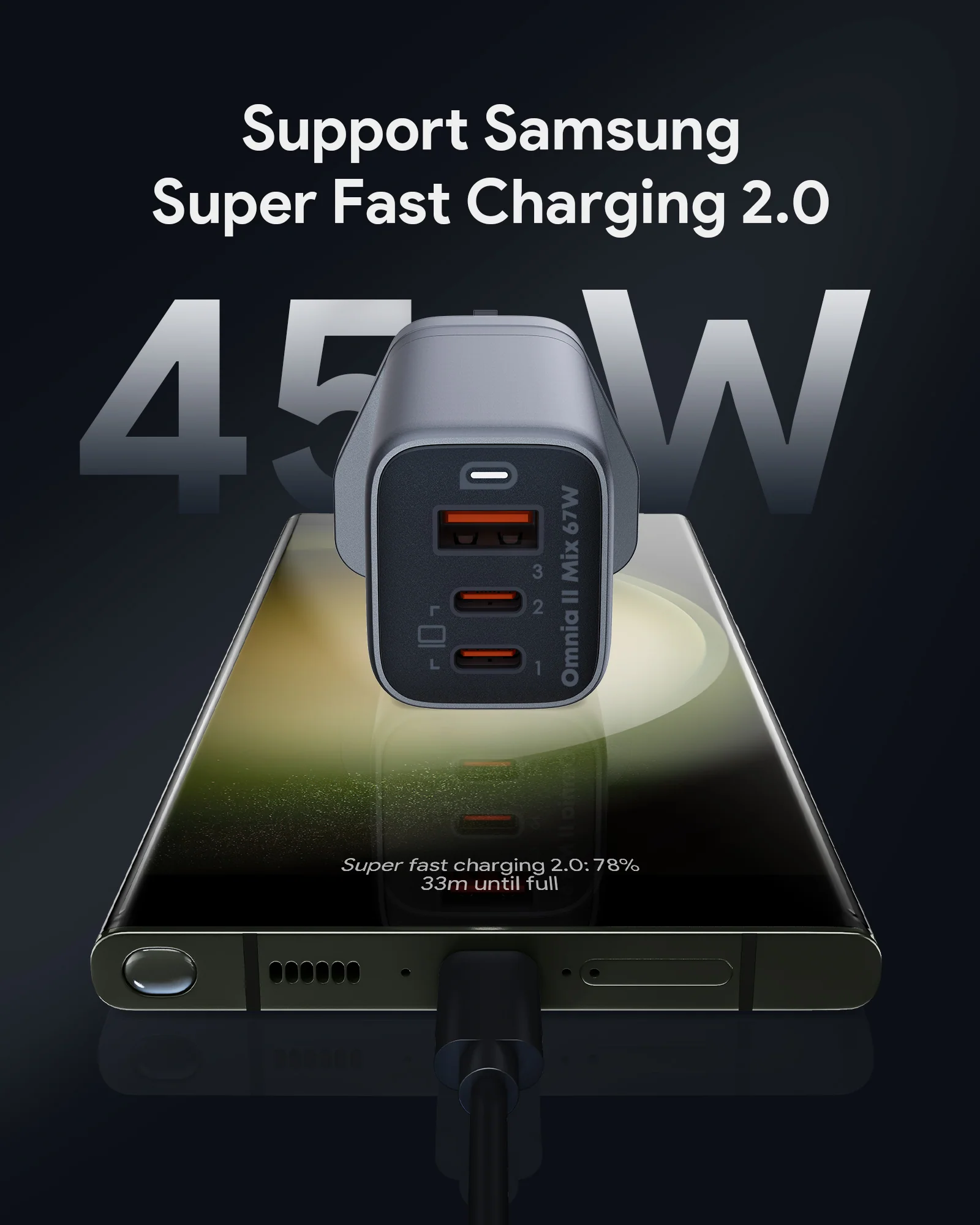 • Samsung 45W PPS: Support Samsung phone Super Fast Charging 2.0 Protocol.