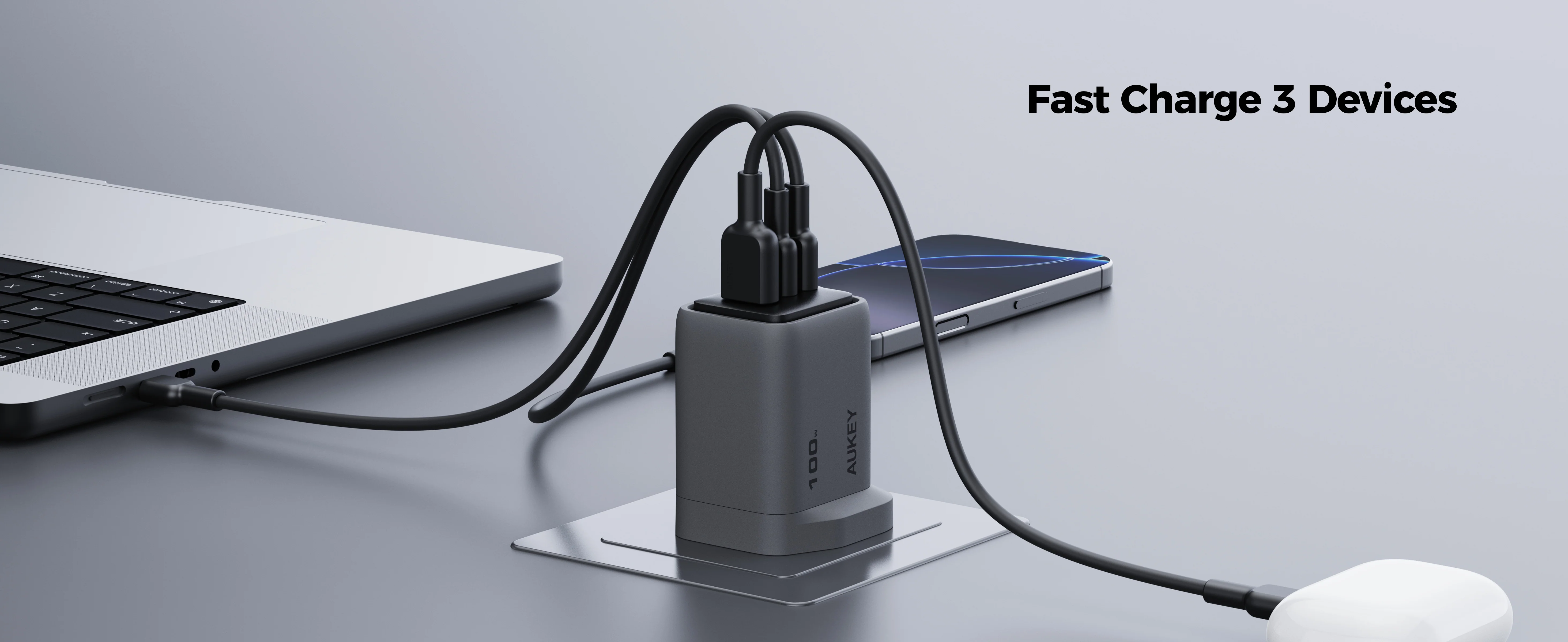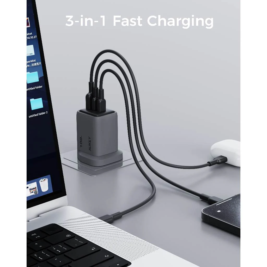 3-Port Charging: Widely compatible with Apple, Android, and other USB-C and USB-A supported devices. With 2 USB-C ports and 1 USB-A port, it allows you to charge up to 3 devices simultaneously.