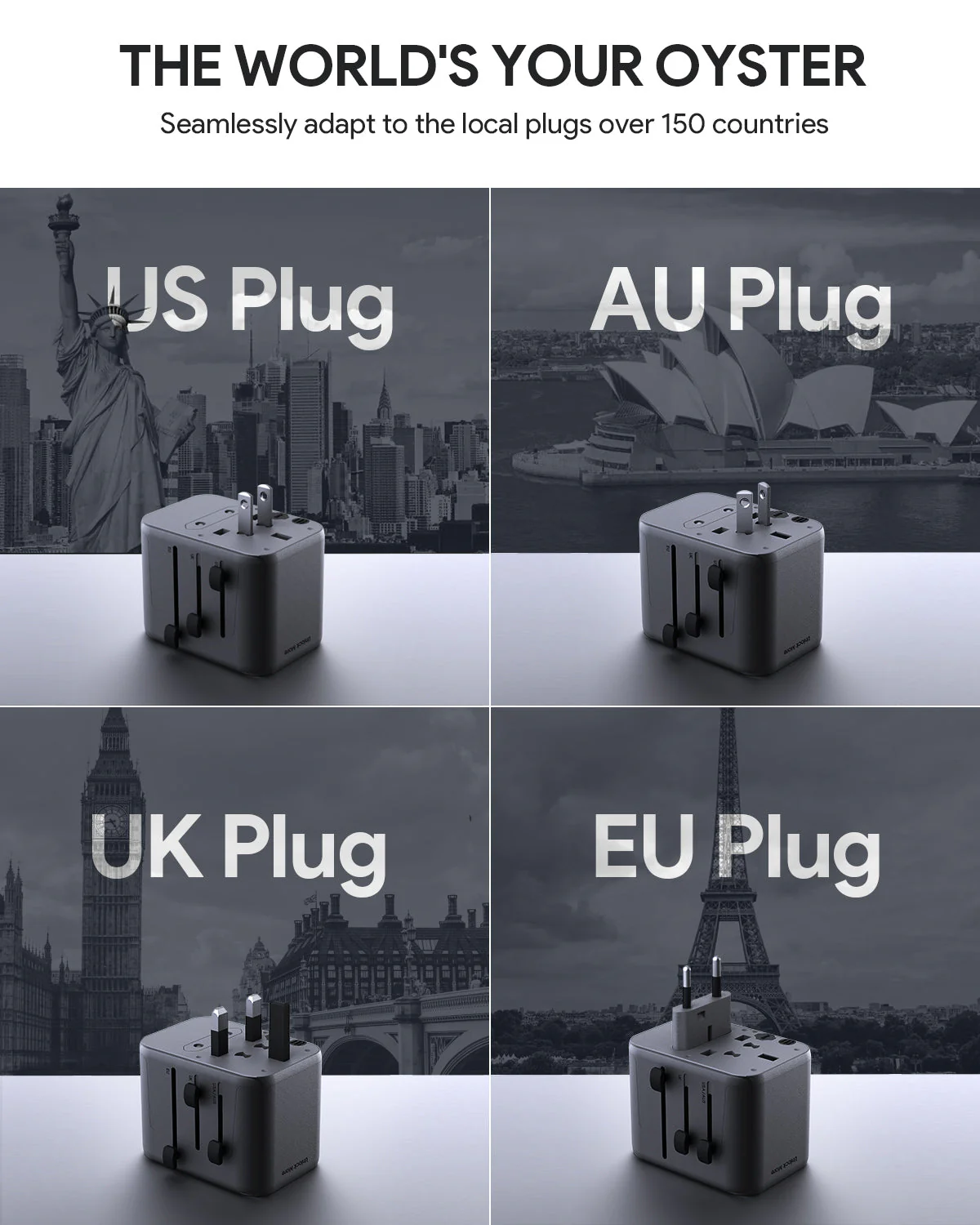Worldwide Compatibility: This travel adapter supports a wide range of global plug stands, including the US, AU, EU, and UK, allowing you to use it in over 200 countries and regions.